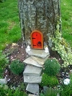 Mais uma ideia super legal, que podemos reproduzir, usa uma cabaça para tomar a forma da mini casa, com direito a caminho de pedriscos e lanterna na fachada.